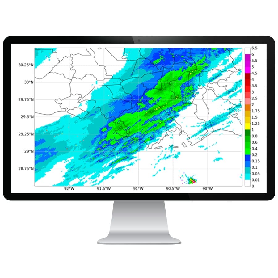 Climavision’s Quantitative Precipitation Estimation (QPE) is a radar data derived product that approximates the amount of precipitation that has fallen at a location or across a region. We combine Multi-Radar Multi-Sensor (MRMS) radar mosaic data with Climavision’s proprietary radar network for a dense observation of rainfall. QPE is capable of providing instantaneous rain rate, as well as various accumulation products that update rapidly.